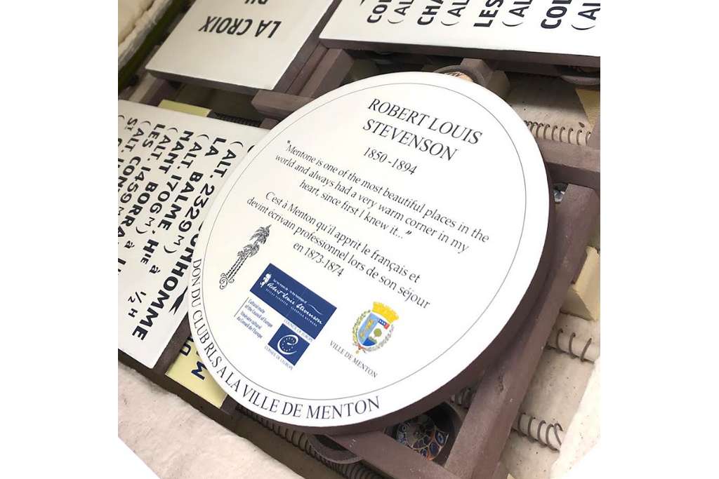 Les plaques signalétiques et plaques funéraires sont de dimensions minimum de : 22X34 cm (280€) ou 42X30cm ou 35X35cm (450€)
